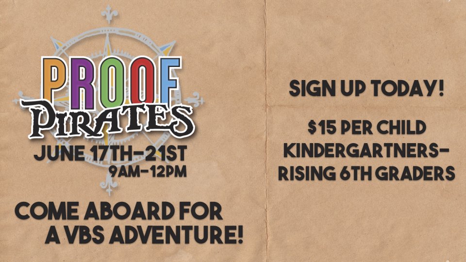 This year VBS will be in the mornings from 9:00am-12:00pm $15 per child for the first two children $5 per additional child