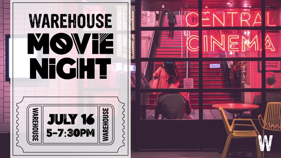 Warehouse Movie Night is July 16th from 5-7:30pm in The Warehouse and we'd love to see all our rising 6th through 12th graders there! Invite a friend or two to join us!