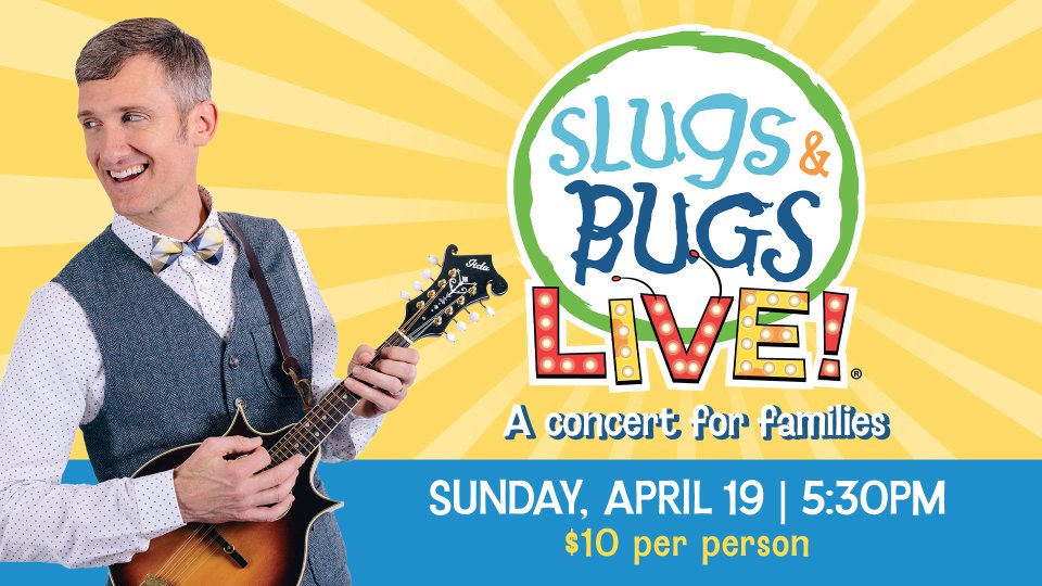On Sunday, April 19, 5:30pm, bring the whole family to Slugs & Bugs Live!—a concert packed with fun, silly songs and Scripture-filled truth! Slugs & Bugs helps kids (and parents) hide God's Word in their hearts in a musical and entertaining way. The cost is $10 per family, which includes a digital download of music sent after the event. Register now for this evening of singing, laughter, and learning as a family!