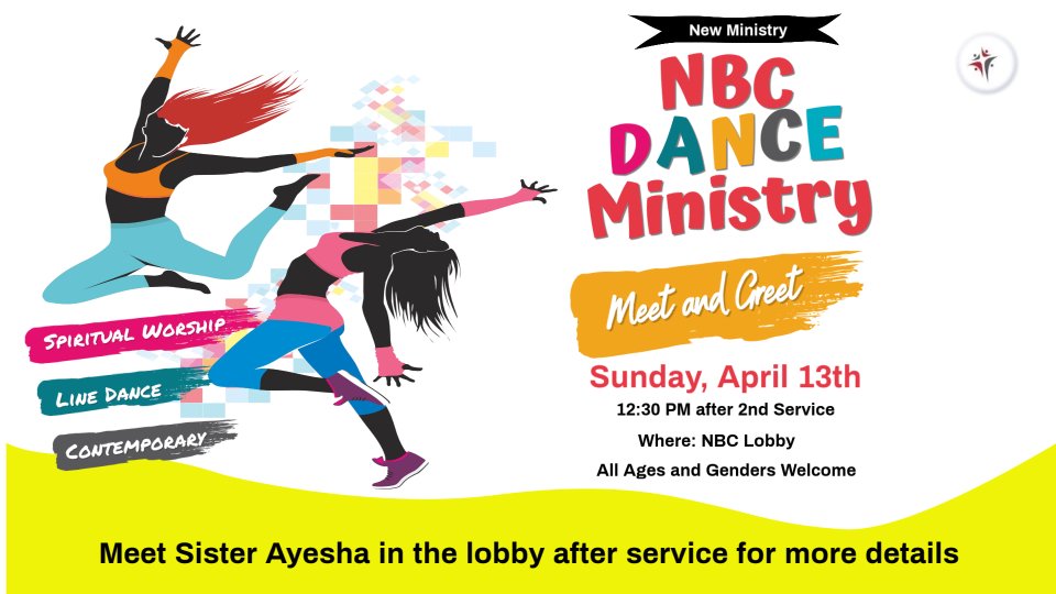 Join us on Sunday, April 13th in the New Birth Church Lobby right after the second service for a special Meet and Greet with the New Dance Ministry!