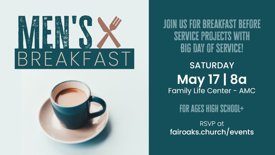 Men's Breakfast | Saturday, May 17 | 8a-10a | Family Life Center