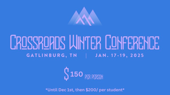 This event will be Jan 17th - 19th 2025. Winter Conference is a Christ centered weekend getaway to Gatlinburg, Tn for current 6th - 12th graders. The event consist of amazing morning and evening worship session plus speakers! This is a great oppurtunity for your student to deepen their walk with Christ and grow in community with other students at the mill church.