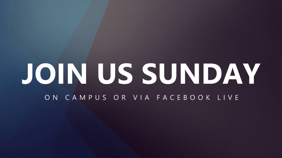 Join us for worship at 9:30 or 11 a.m. on campus or 11 a.m. via Facebook Live! Classes provided for children ages 6 weeks up to 6th grade as well as Student Ministry.