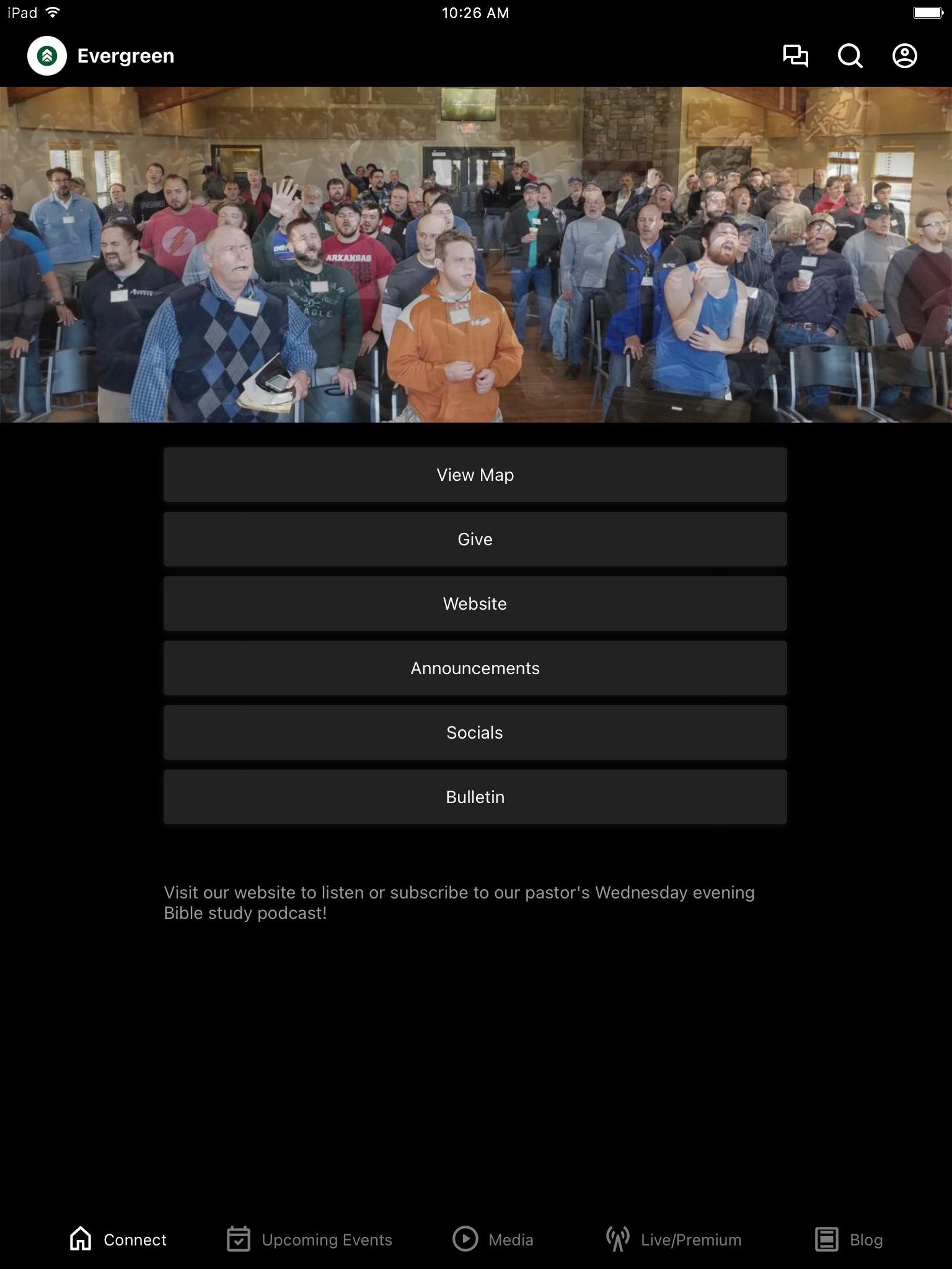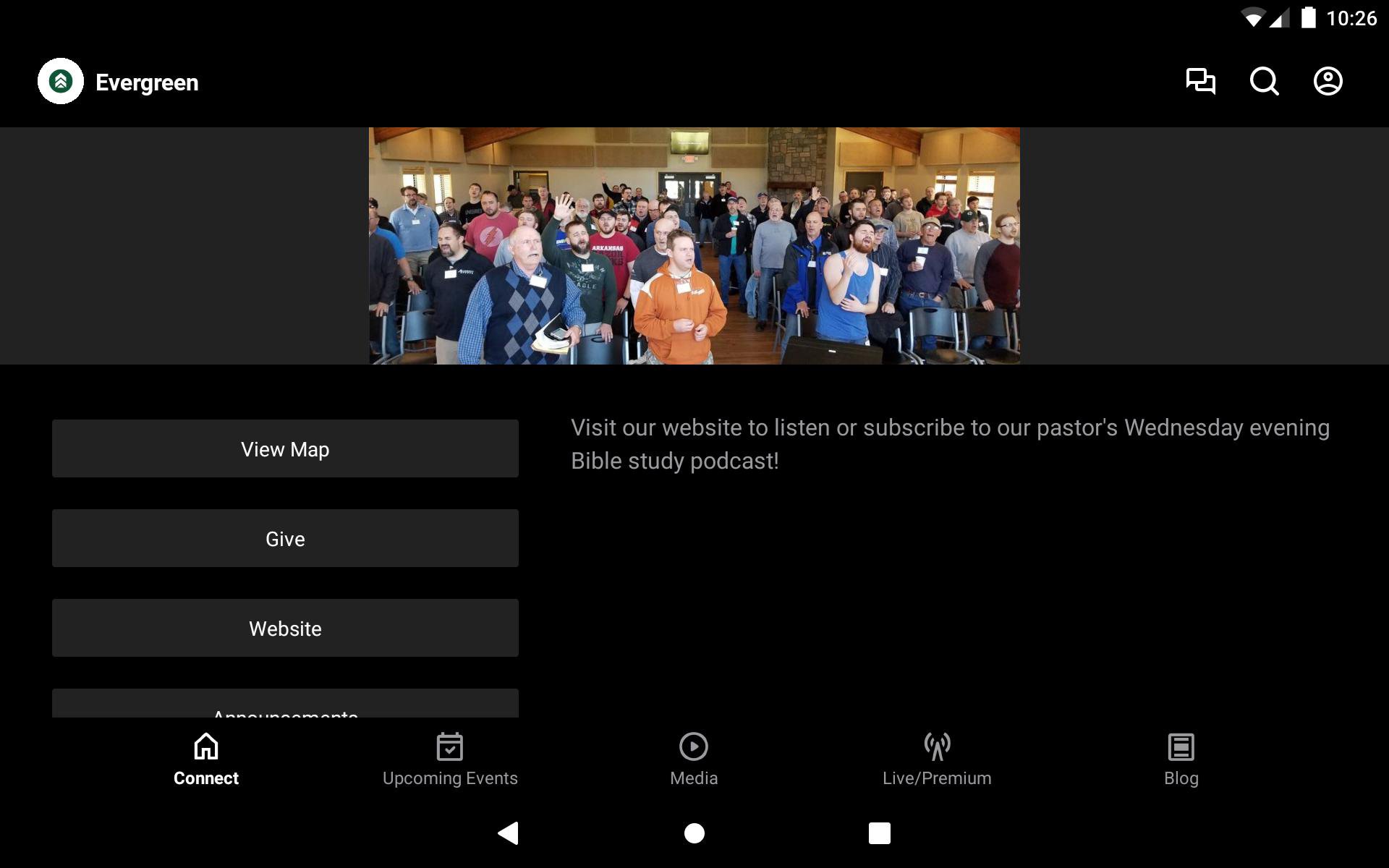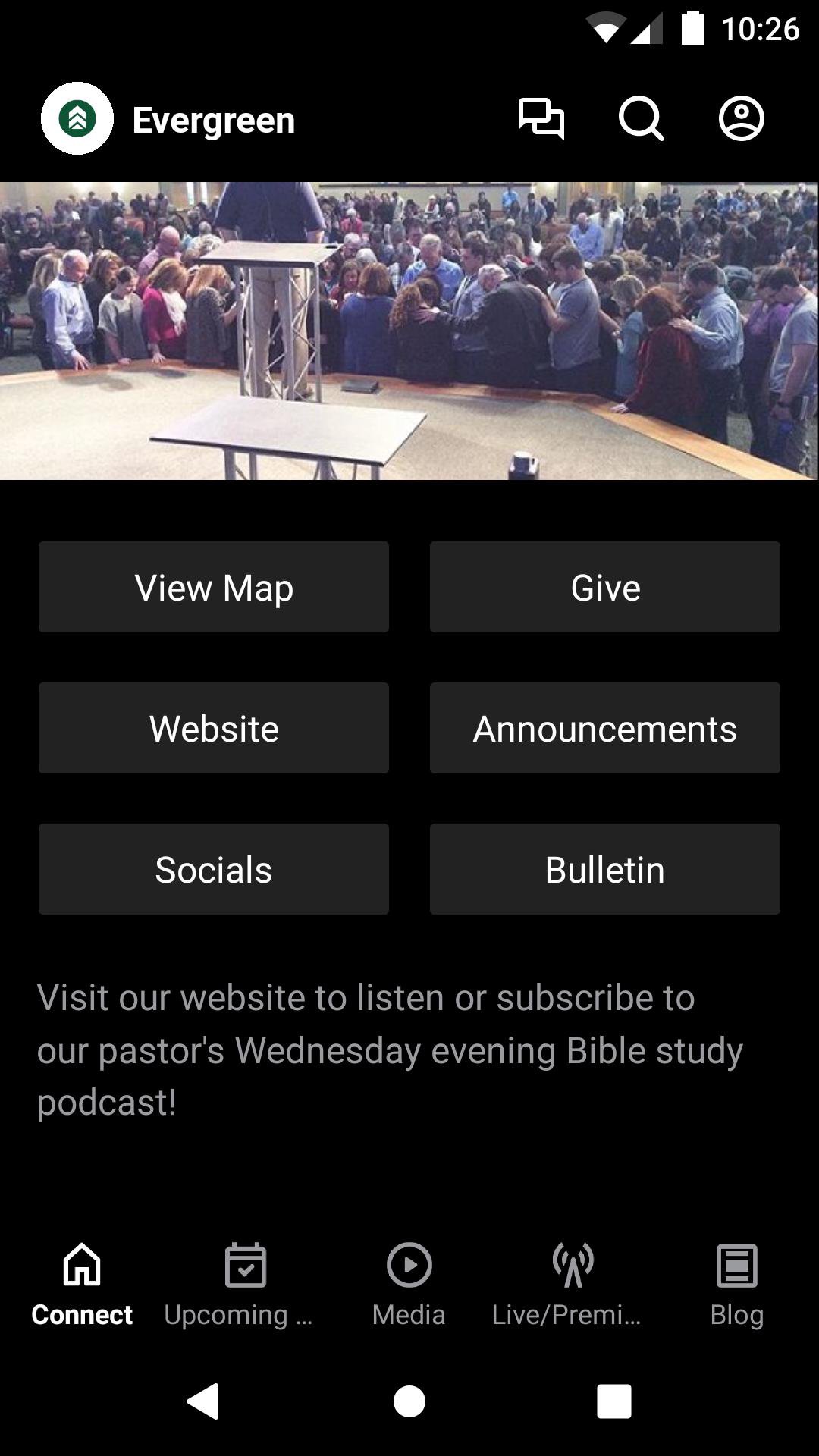 Welcome to the official Evergreen Church app! Livestream or watch recent sermons recorded live at our campus in Tulsa, OK. From this app, you can also see upcoming events, see announcements, give online, view a map, etc! After you’ve downloaded and enjoyed the content, you can share it with your friends via Twitter, Facebook, or email. For more information about Evergreen Church, please visit: http://www.evergreenbc.org The Evergreen Church App was developed with the Subsplash App Platform.