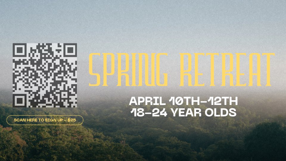 Falls Creek Spring Retreat is a weekend in April where young adults can come together to rest and grow in their relationship with the Lord and those around them. This is an amazing opportunity to spend time with other believers and spend time with the Lord.