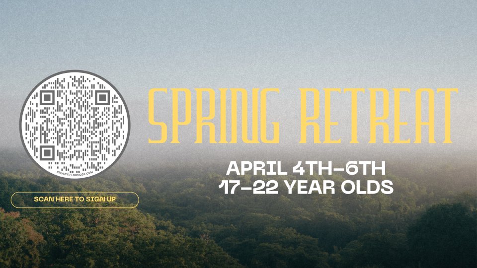 Falls Creek Spring Retreat is a weekend in April where young adults can come together to rest and grow in their relationship with the Lord and those around them. This is an amazing opportunity to spend time with other believers and spend time with the Lord.