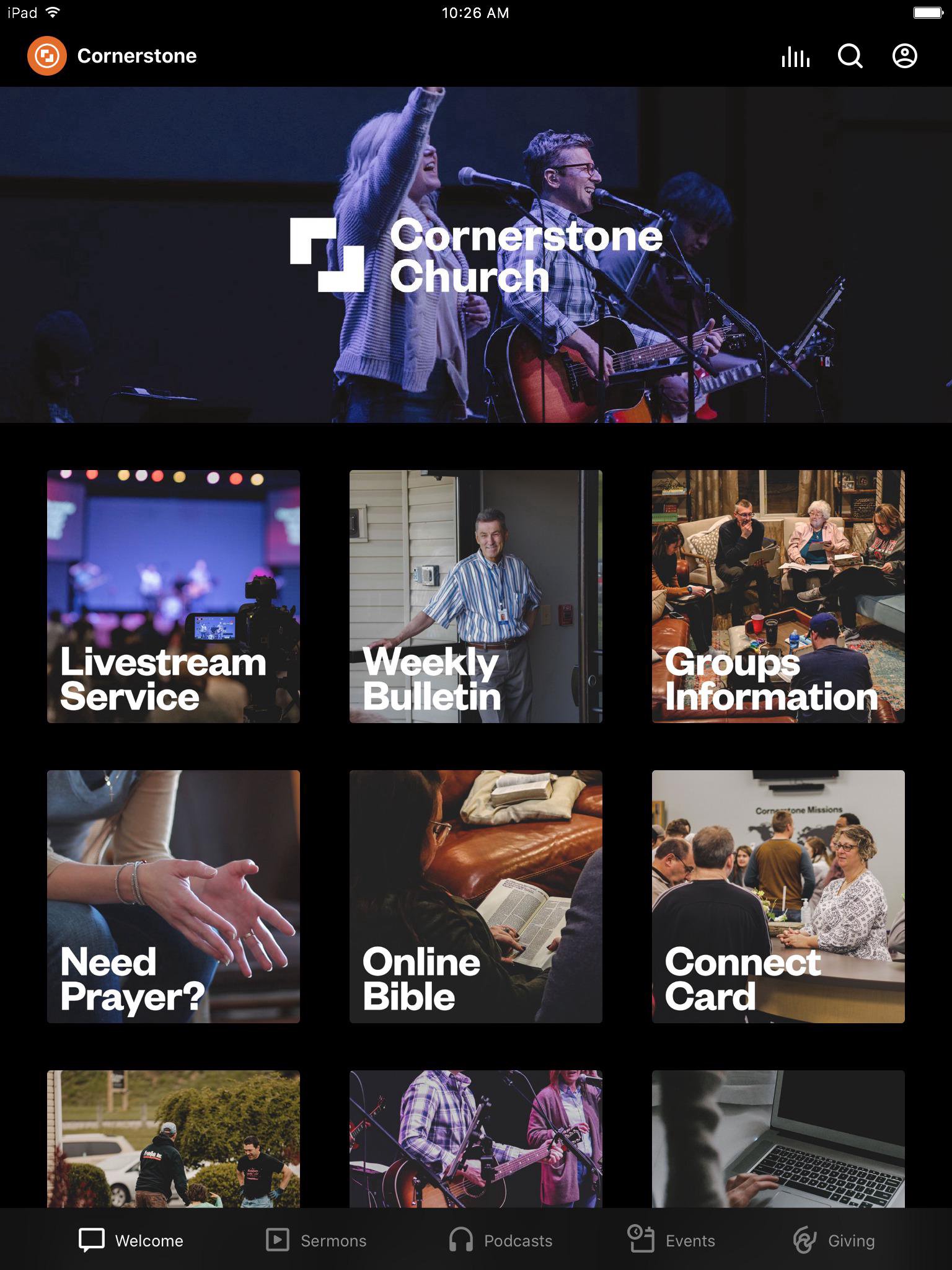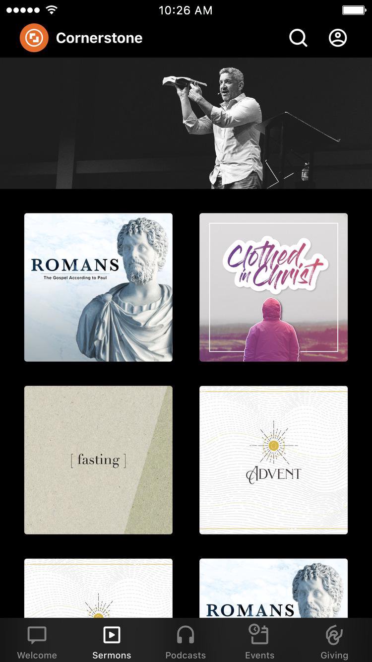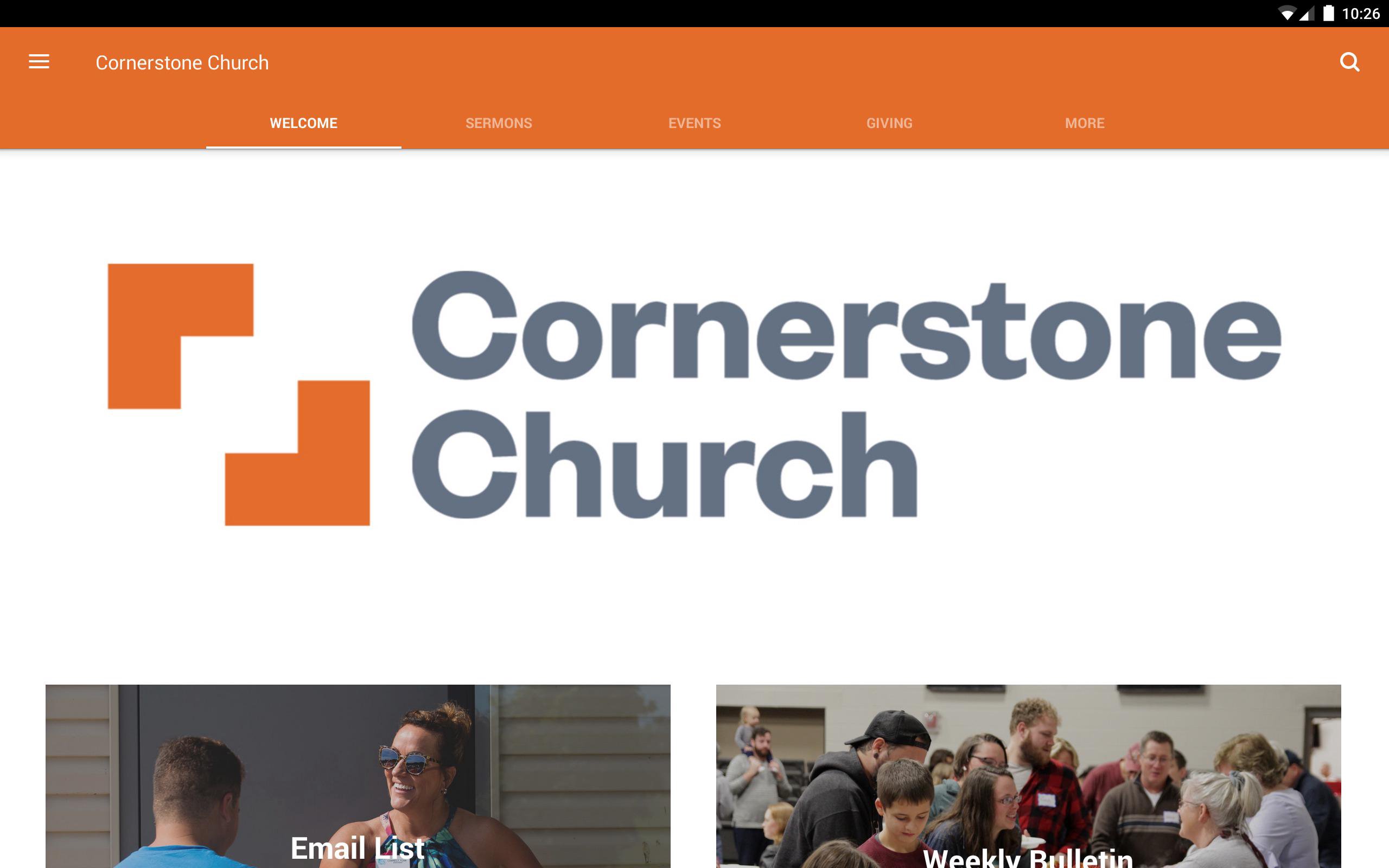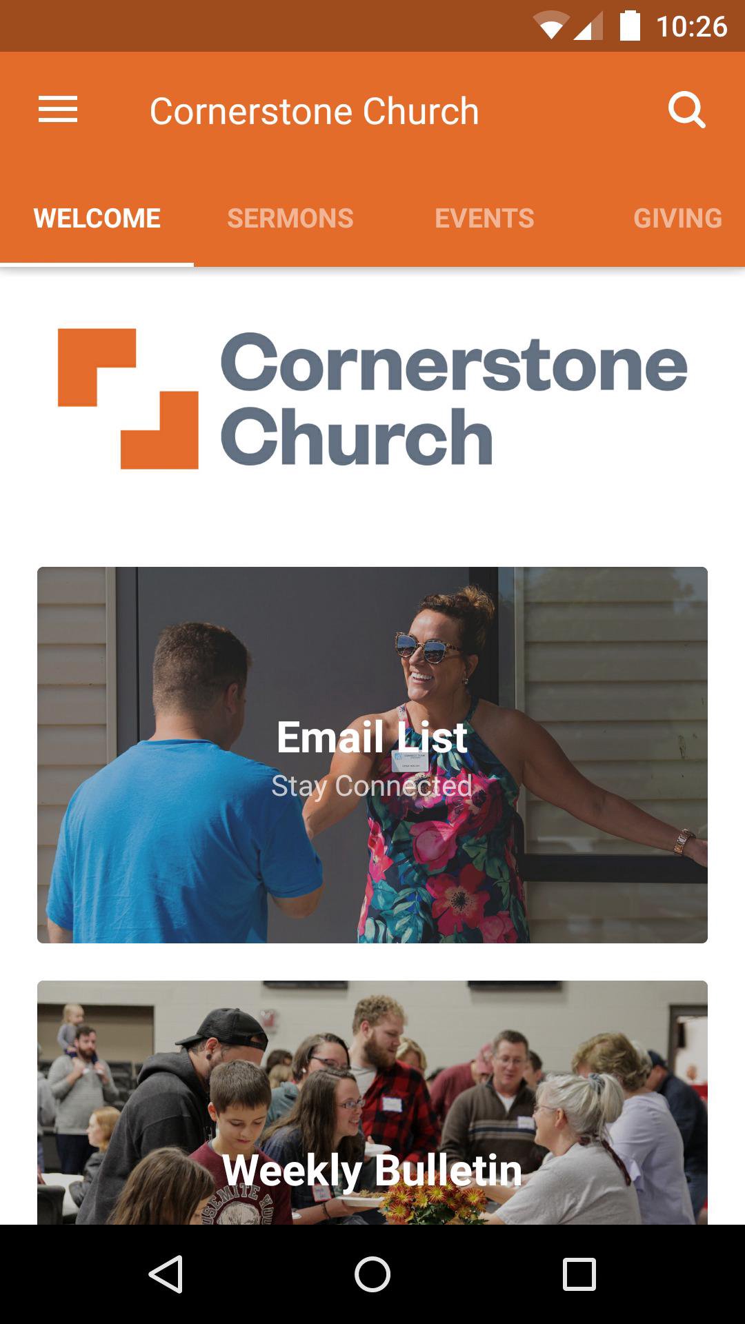 Cornerstone Church content and resources to help you stay connected. With this app you can: - Listen to sermons - Conveniently give online - Learn about upcoming events - Stay up to date with push notifications - Share your favorite messages via Twitter, Facebook, or email - Download messages for offline listening