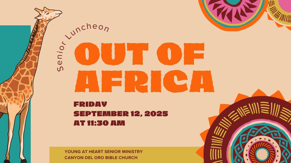 Join the Senior Ministry for their next luncheon on September 12 in Chapel Hall. This luncheon theme is "Out of Africa" and the cost is $10/person.
