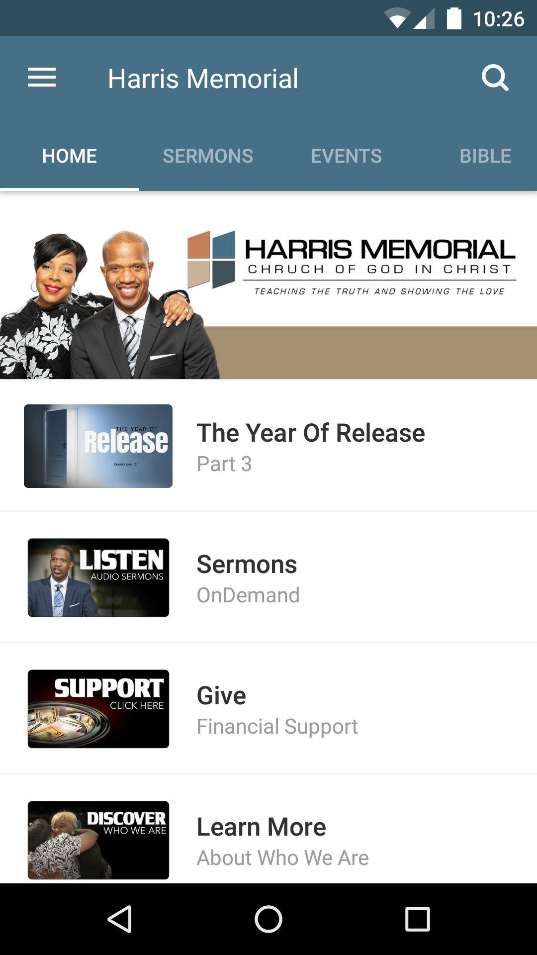 Welcome to Harris Memorial Church where we teach the truth and show the love! The doors to our church are open to you, regardless of your background or where you are in your spiritual journey. Here you will experience anointed teaching, heart-felt worship, honest friendships, constant prayer and compassionate care towards others. HMC Mobile App will allow you to stay connected with Harris Memorial Church, view our live worship service, online giving, and receive notices of special events at Harris Memorial Church.