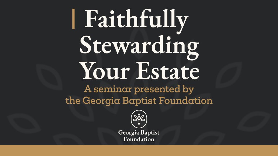 The Georgia Baptist Foundation will be leading an estate planning seminar on Sunday March 9th in the fellowship hall following the morning services and lunch will be provided.