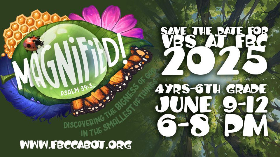 Magnified! VBS will encourage kids to look closely at the details of God’s amazing world and magnify, or proclaim, the greatness of God. God made us, cares about us, loves us, forgives us, and is faithful to keep all His promises to us. We can praise God together! We were made to magnify God!