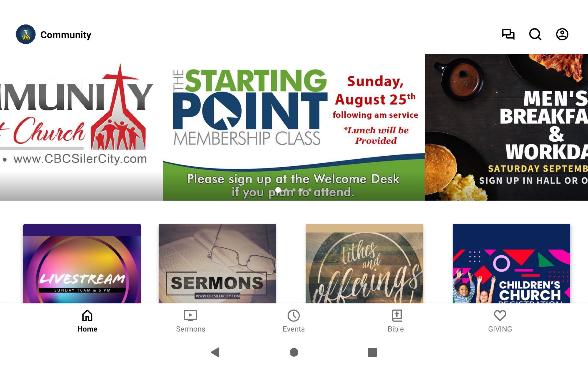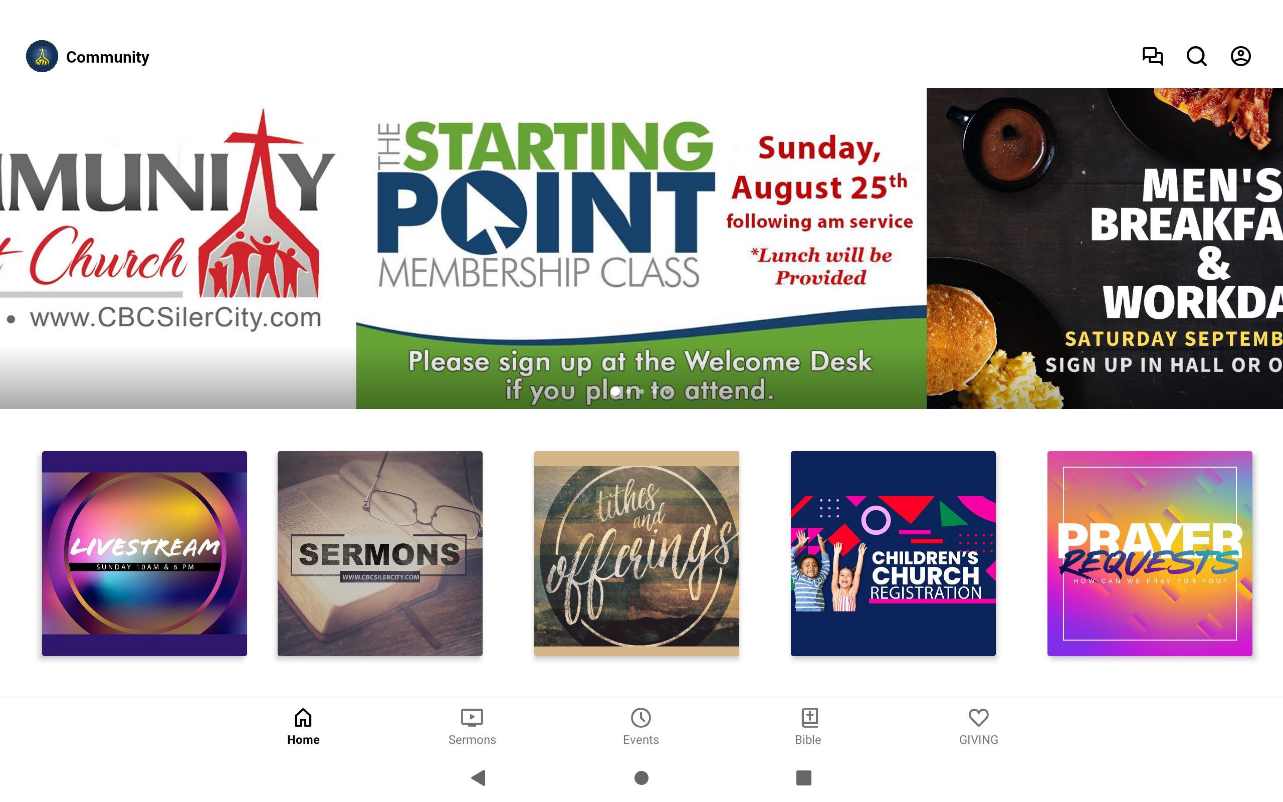 Welcome to the Community Baptist Church official app. It is our desire to provide hope and help to the hurting, encourage the believer, and above all exalt the name of Jesus Christ. We are located in central North Carolina in the town of Siler City. It is our desire to connect with you and your family through this app and that you would one day visit us as well! App Features: - Event Calendar- See what's happening at Community and how you can get involved! - Listen and watch sermons by our Pastor, Dr. Mark Agan as well as other special guest preachers - Learn about the various ministries of Community Baptist Church - Review Location and service times - Follow Community Baptist on Facebook For more information about Community Baptist Church, please visit: www.CBCSilerCity.com The Community Baptist Church App was Created with the Subsplash App Platform