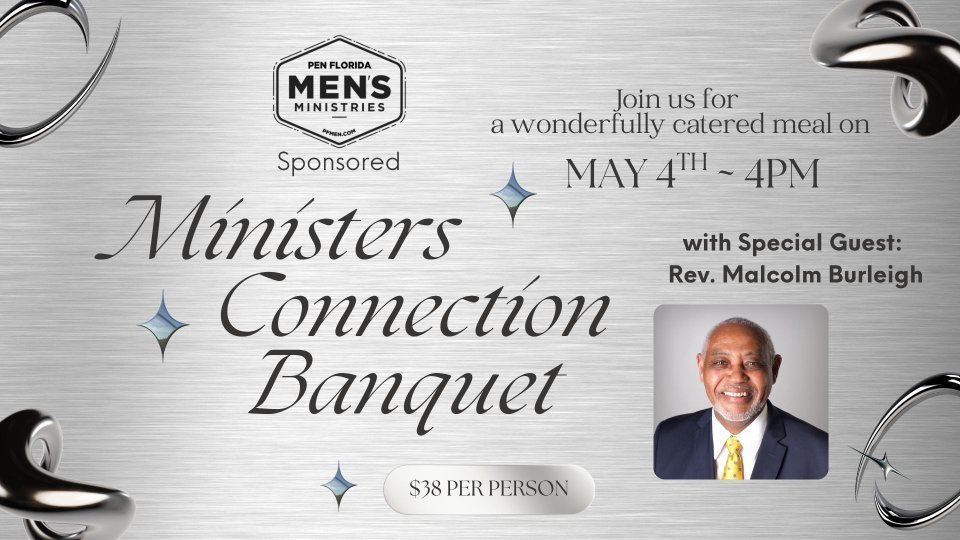 Come and join us for a wonderfully catered meal, a powerful life-changing message from Former National U.S. Missions Director Malcolm Burleigh, and a great time of connecting with other ministers and their spouses, here in the PenFlorida District.