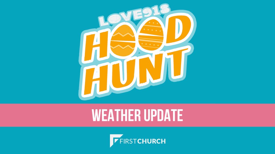 Storms moved into Owasso Friday night and we've made the decision to cancel 5 Hood Hunt sites for Saturday, Apr. 19. The Special Needs Hood Hunt *IS HAPPENING* inside First Church on N. Garnett Rd. at 10AM Saturday. This egg hunt is designed for children with special needs and their siblings. Rain will not stop the joy we'll share celebrating Jesus at our SIX Easter worship services. We invite you and your loved ones to come to First Church Saturday evening or Sunday for a service. We can't wait to celebrate Easter with you!