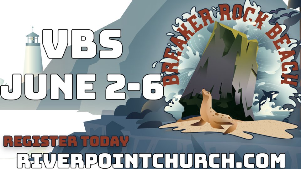 VBS is just around the corner and your kids do not want to miss out. There's gonna be food, games, teaching, & worship! Be sure to register in advance. For any questions regarding VBS you can contact River Point Community church.