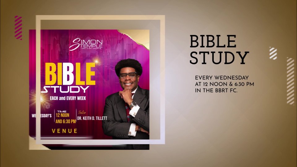 Weekly Bible Study at Simon Temple AME Zion Church. Join us Wednesdays at Noon and 6:30pm!