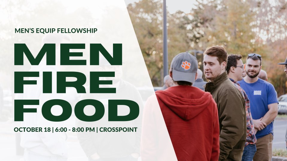 Men of all ages and stages of life are invited to our annual "Men Fire Food". Come gather with other brothers in Christ across generations to feast upon great food, hang out by a crackling fire, and perhaps compete in a little friendly competition. You'll also hear about future opportunities to grow in biblical manhood and connect with other brothers in Christ among our Crosspoint family. Register today!