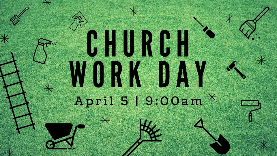 Saturday, April 5 at 9:00 am, following the men’s breakfast, we will have a church work day. We will do some sprucing up both inside and outside of the church. Please plan to be a part.
