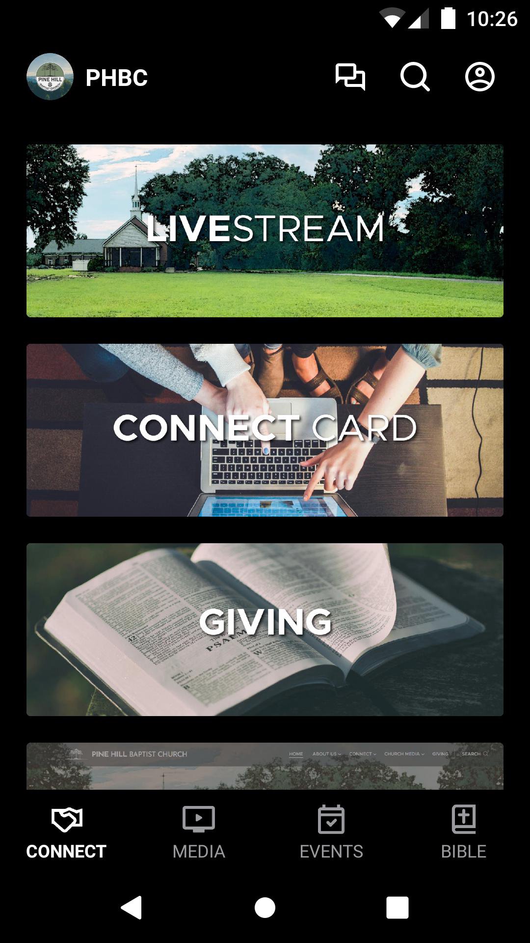 This app will help you stay connected with the day-to-day life of Pine Hill Baptist Church of Cairo, Georgia. With this app you can: - Watch or listen to past messages - Stay up to date with push notifications - Share your favorite messages via Facebook, Instagram, or email - Download messages for offline listening - Communicate with groups within the church that you are a part of