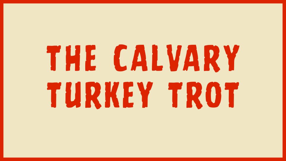 Join the Calvary Family and others as we begin a day of thanksgiving with a family-friendly event. A special run-day shirt will be given to all those who pre-register. Prizes are awarded for placements in various age-groups.