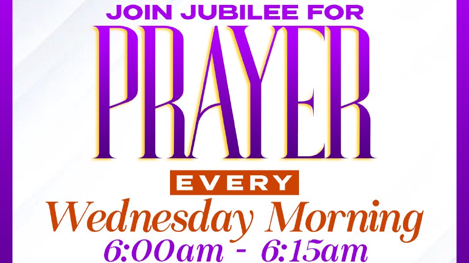 Join Jubilee for prayer every Wednesday morning from 6 - 6:15 AM! Dial (805) -706-4725. No access code is needed. | LUKE 18:1 |