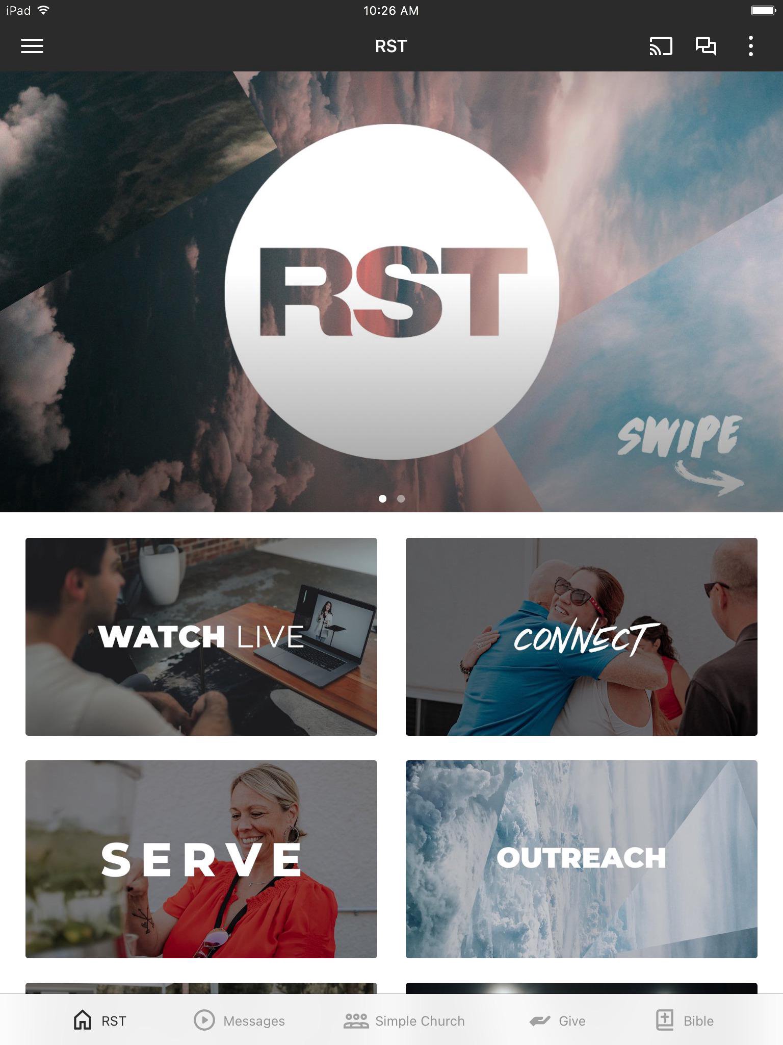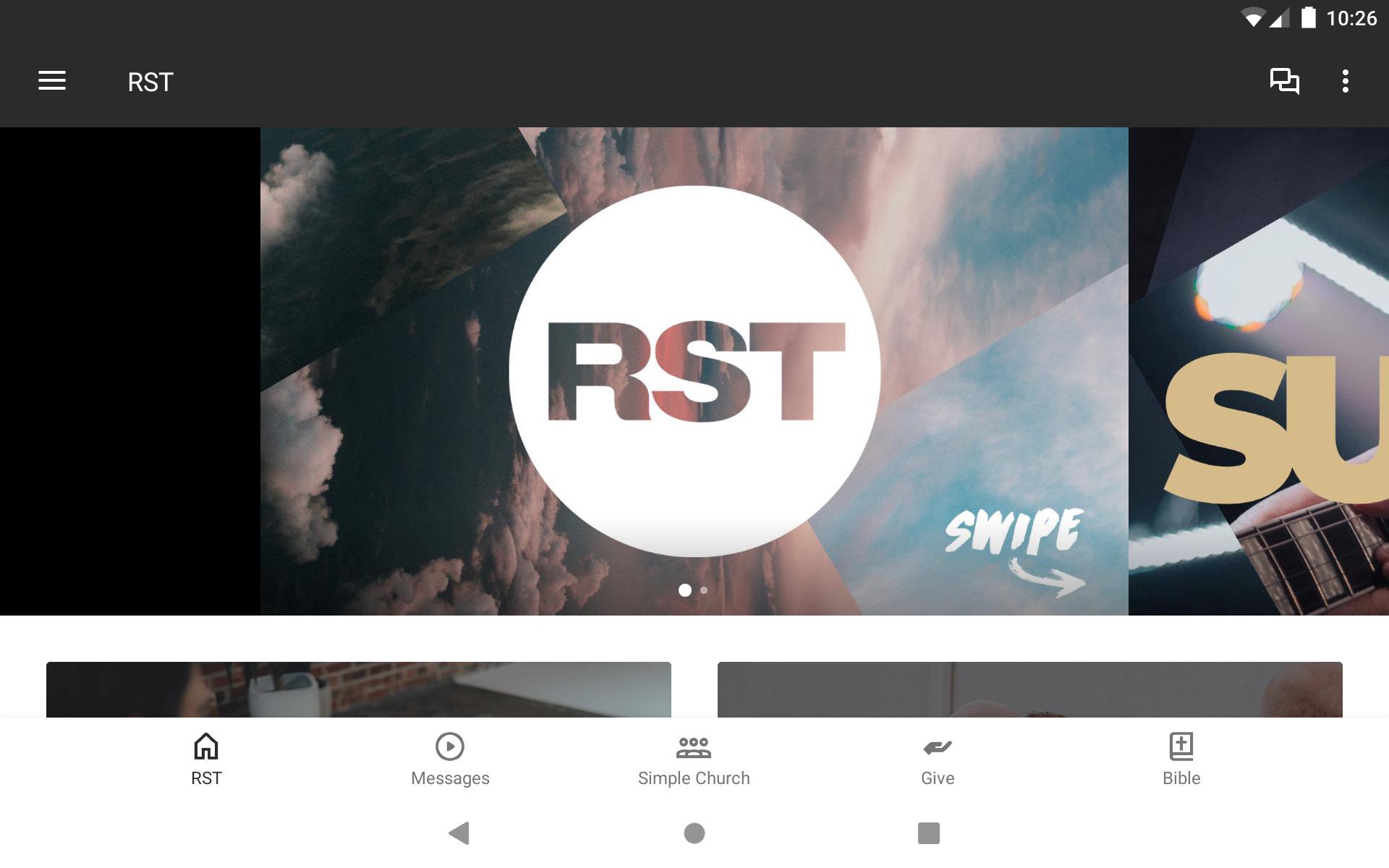 Stay up to date with all things happening at RST as well as grow in your faith with all of our features such as: - Our Events page where you can see all upcoming events at RST for each community - Simple Church Resources where you can find content to go through with your simple church - Watch or listen to past messages - Access Resources to help you grow in your faith - Give tithes and offerings directly through the app - Download messages for offline listening - Follow along with our Bible reading plan - Stay up to date with push notifications - Share your favorite messages via Twitter, Facebook, or email - Have the Bible with you everywhere you go