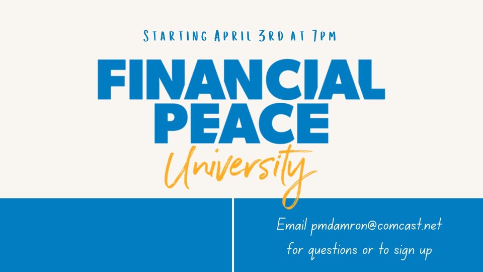 Financial Peace University (FPU) is a 9-week course that teaches people how to manage their money. The class includes teaching videos from Dave Ramsey. In the class you can learn the following: