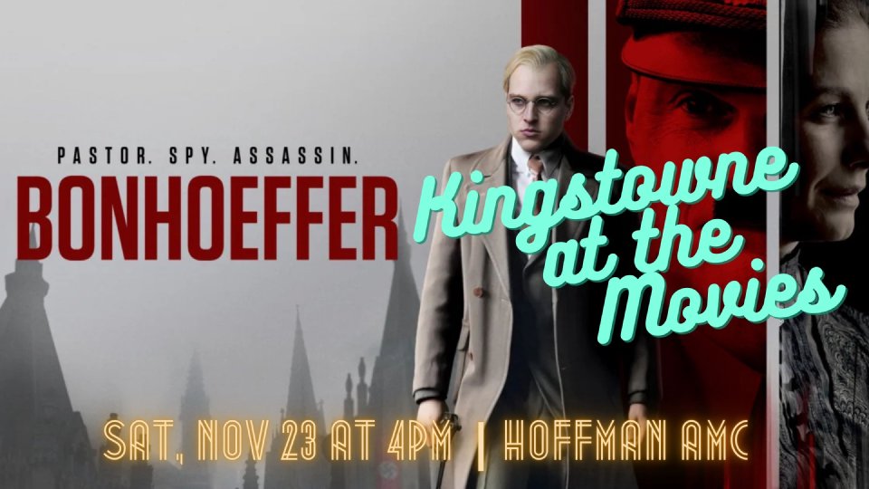 Join the Kingstowne Communion for a 4pm viewing of the new movie Bonhoeffer: Pastor, Spy, Assassin, the true story of Dietrich Bonhoeffer, a man who preached love while plotting the assassination of Hitler, at Hoffman AMC theater in Alexandria. We've already purchased group tickets for that viewing. Reserve your seat(s) with us today while they last for $5 each.