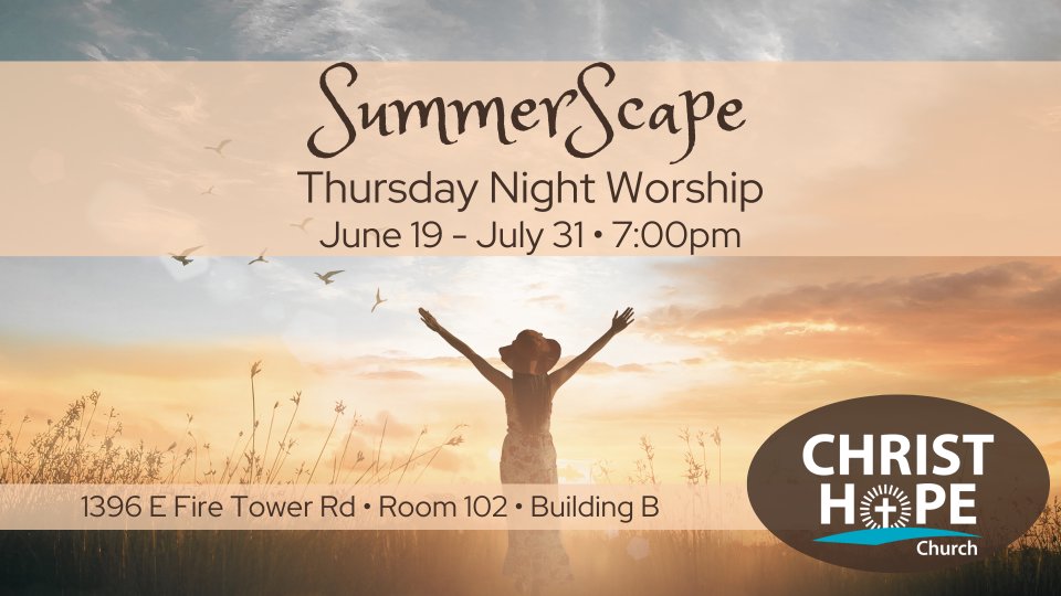 Christ Hope Church is excited to offer an additional worship opportunity on Thursday nights at 7:00 PM in Room 102, Building B (1396 E Fire Tower Rd).