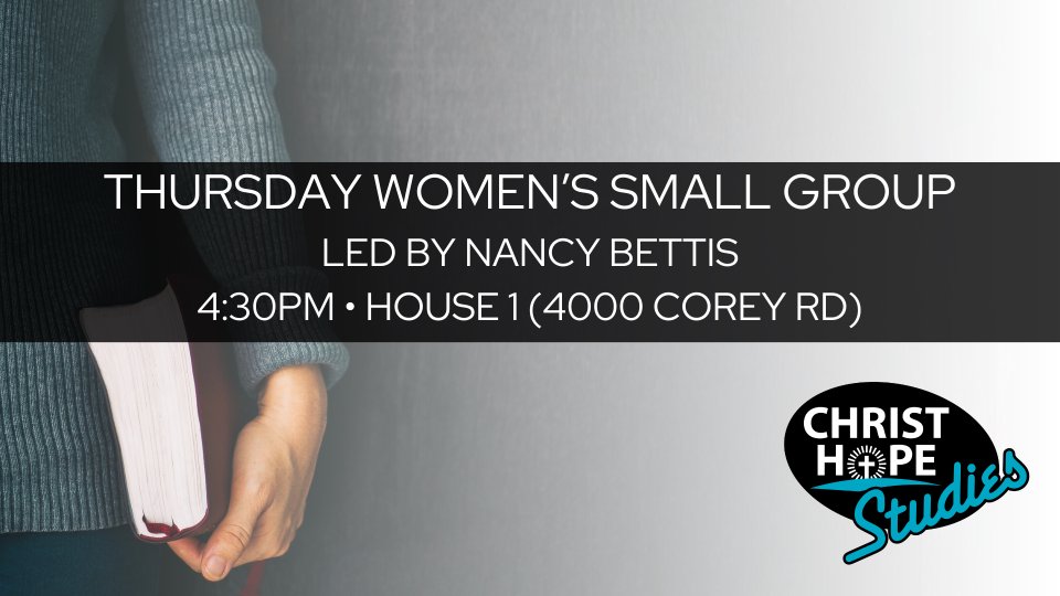 This women's small group will be meeting every Thursday afternoon at 4:30pm in House 1 (4005 Corey Rd). This group will work through different studies, pray for each other and build community. This group will be closed off at 20 participants and there are a few spaces left. Come join us!
