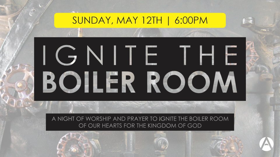 Join us for our worship and prayer night titled "Ignite Boiler Room". This powerful night exists to ignite the boiler room of our hearts for the Kingdom of God. There will be a powerful time of worship, prayer and the presence of God. Childcare is NOT available.