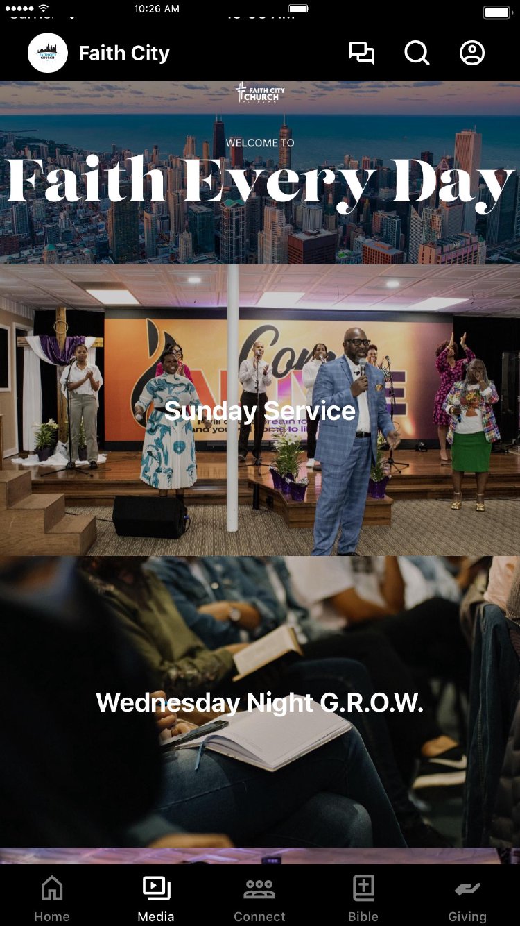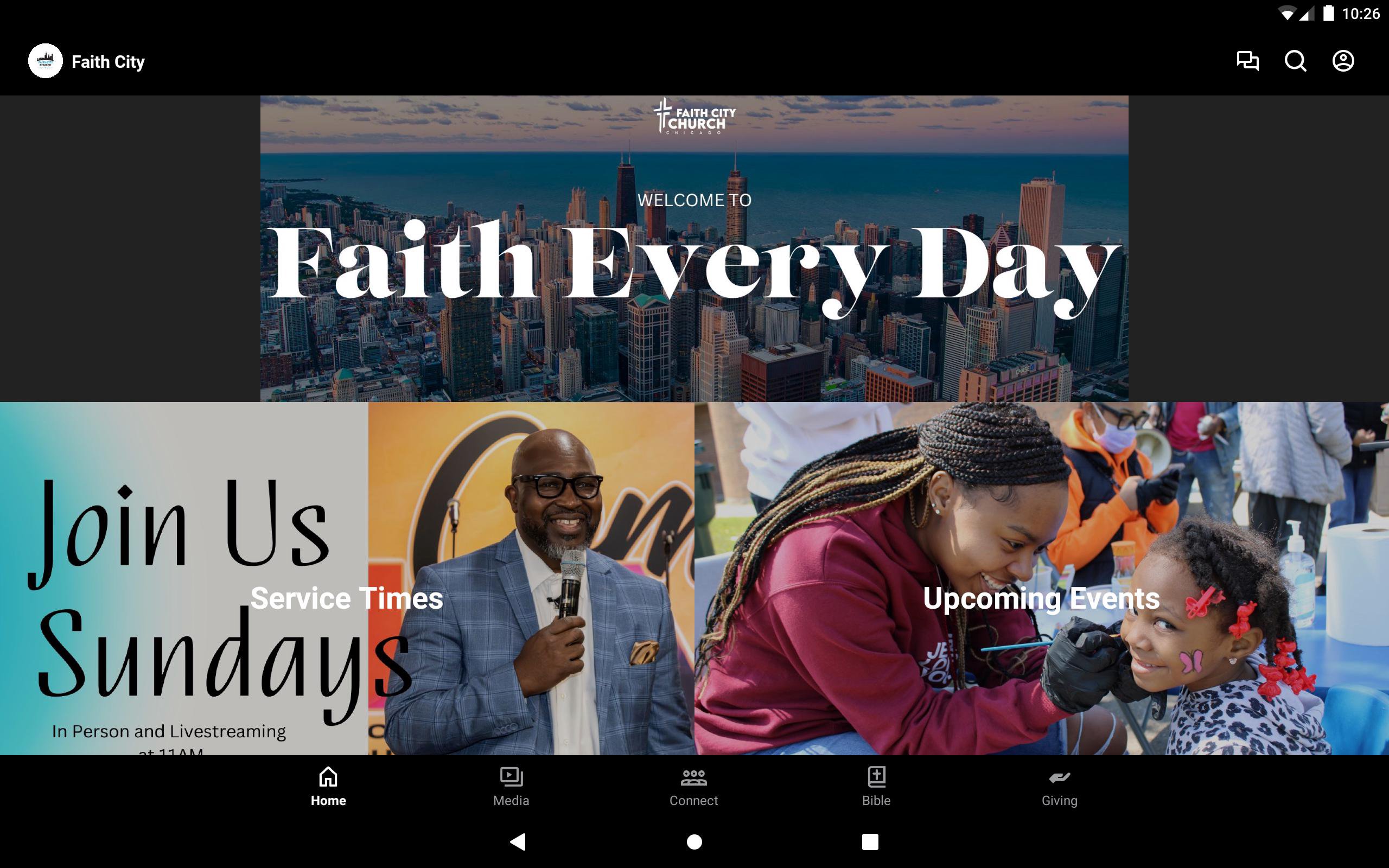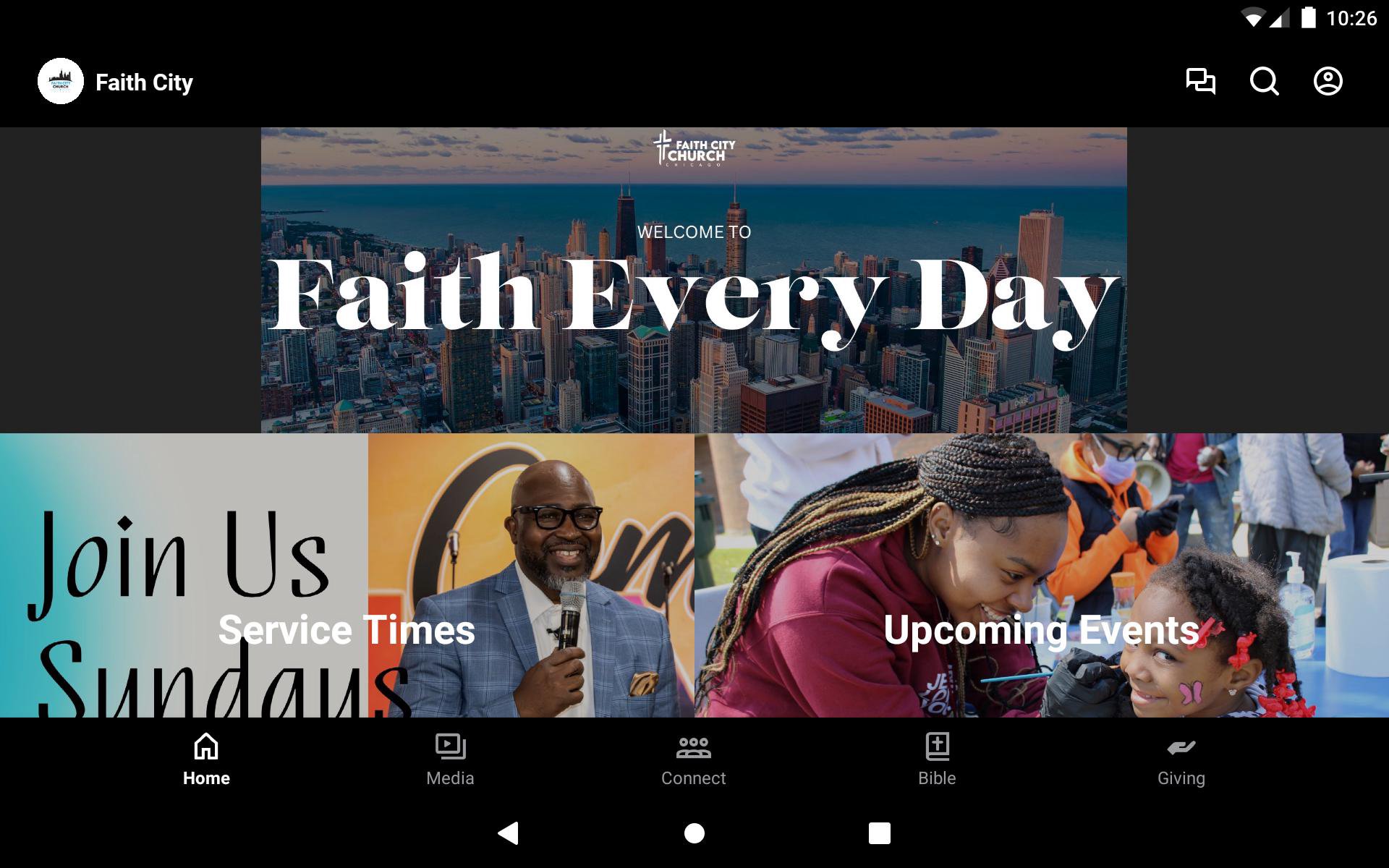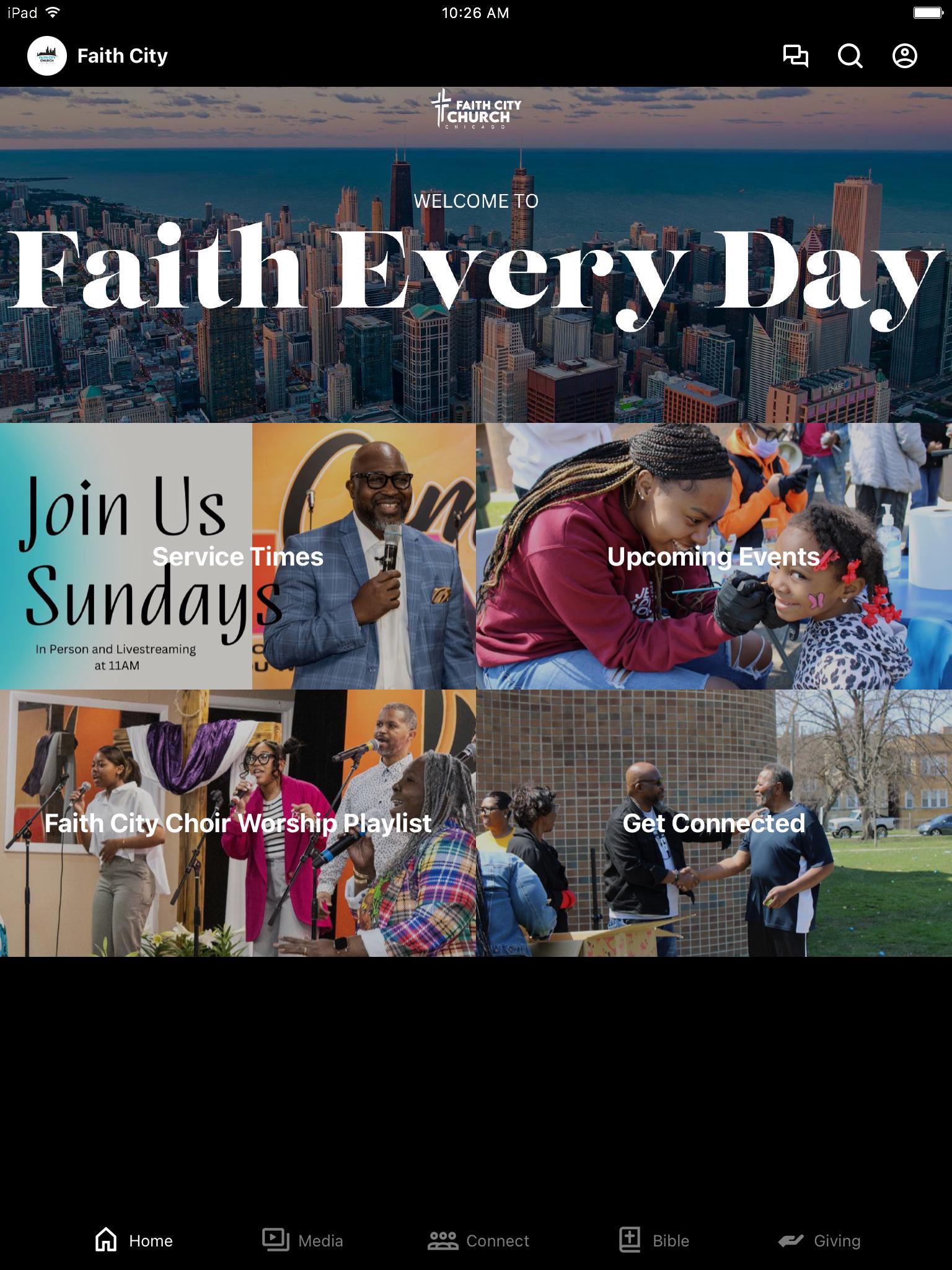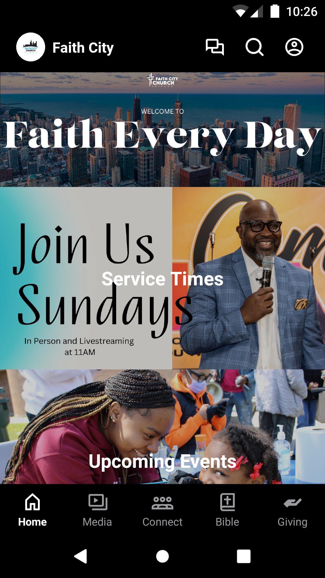 At Faith City Church, we are an atmosphere of believers who believe that God can do anything! A culture built on God's word producing Love, Empowered Lives, and Faith for Generations. A CITY FOR ALL! Isaiah 1:26b - "You shall be called the city of righteousness, The Faithful City." We have powerful content and resources to help you grow and stay connected. This app will help you stay connected with the day-to-day life of our church. With this app you can: watch or listen to past messages; stay up to date with push notifications; share your favorite messages via Instagram, Facebook, or email; and download messages for offline listening.
