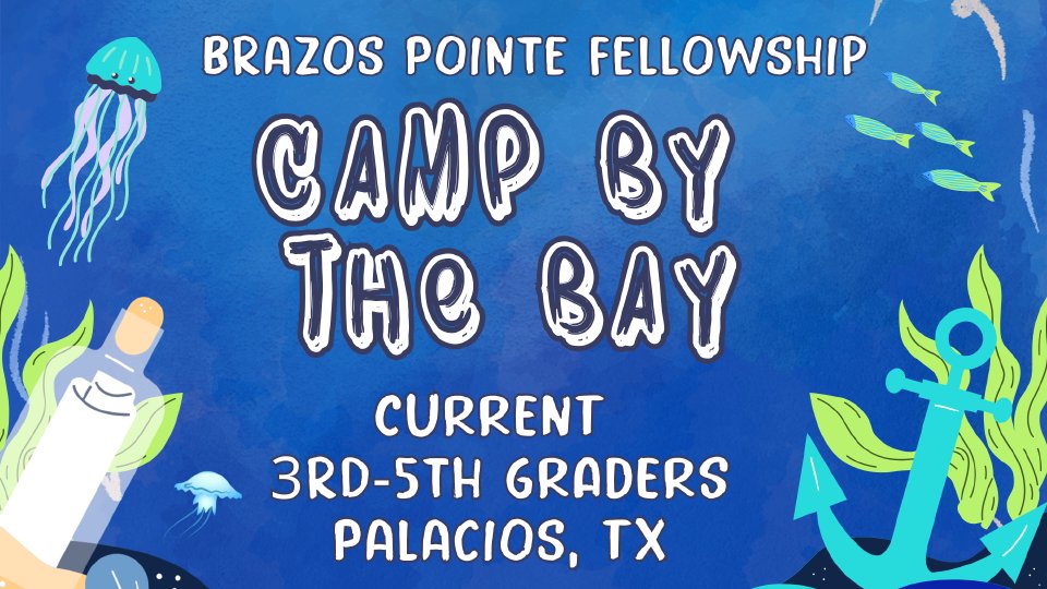 Camp By the Bay is designed for 3rd-5th graders in Palacios, Texas. Come join us for an adventure where we will explore the concept of God and learn about following Jesus. The camp will feature exciting activities by the ocean, including engaging large group teachings, meaningful small group interactions, fun recreational events, and more. Please note that the grade level is determined by the 2025/2026 school year.