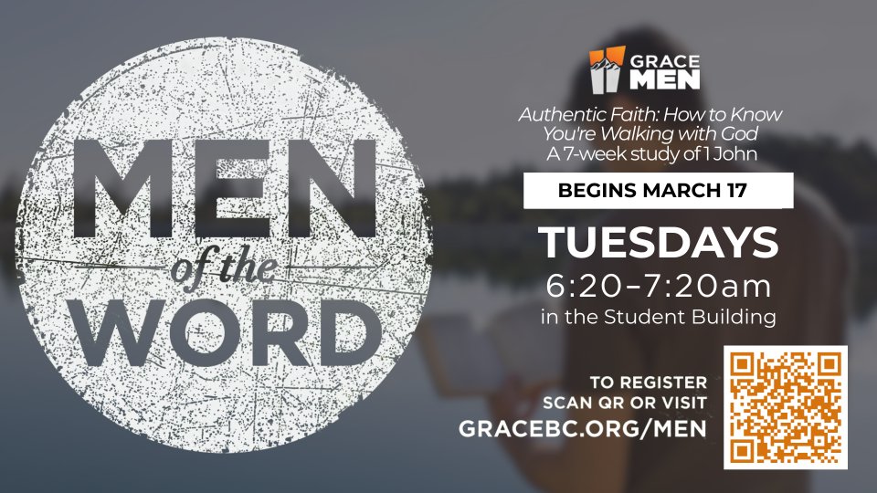 Men, how do you know your faith is authentic and you're truly walking with God? That's what you'll examine in the spring semester of Men of the Word as Pastor Jeff McElroy takes men through a study of the book of 1 John. The 7-week study begins Tuesday, March 17th at 6:20am in the Chapel.