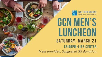 Join GCN Men for lunch in the Life Center. The meal will be provided. There is a suggested $5 donation.