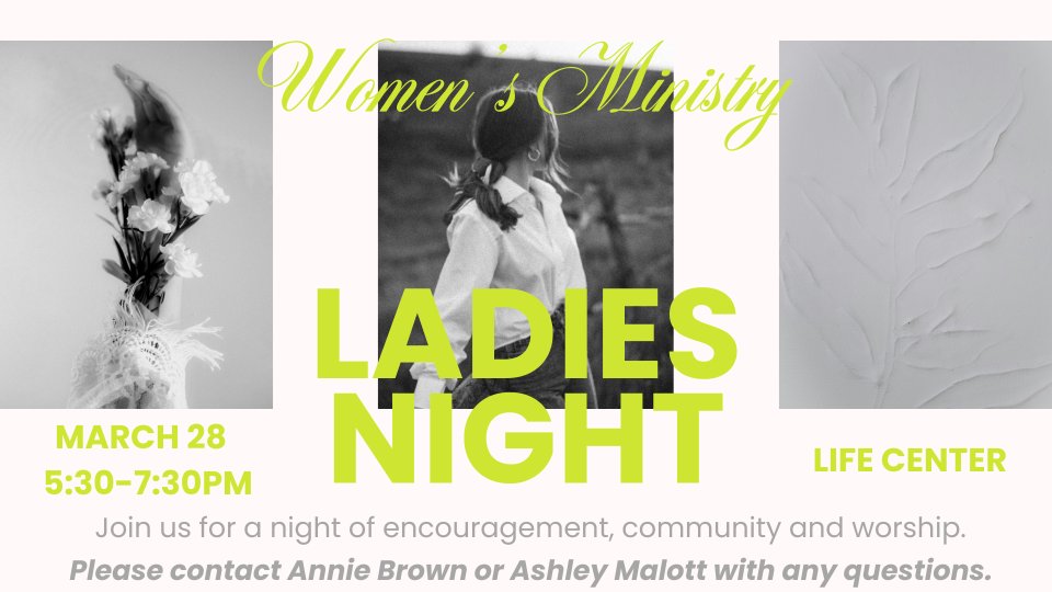 Join us for an evening of encouragement, community and worship. Please register at the above link to let us know you are coming and if you can bring an appetizer to share. Please feel free to contact Annie Brown, annkimbrown@yahoo.com or Ashley Malott, ashley_malott@yahoo.com if you have any questions about this event.