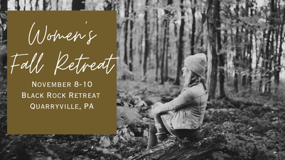 Join us for a beautiful weekend of worship, prayer, learning, and togetherness at EPIC Women's Fall Retreat at Black Rock Retreat Center in Lancaster, PA. Nov 8-10, 2024. Cost is $200 which includes 2 nights lodging and 5 meals.