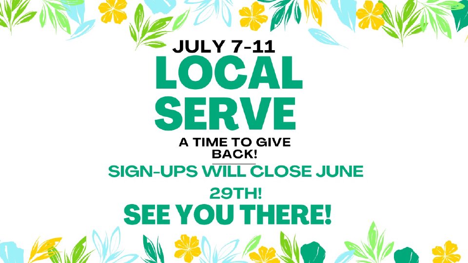 Students, do you like helping people? Do you like hanging out with your friends and peers? Do you like doing fun things like hitting golf balls a long ways, and hanging out by the pool? If so, sign up for Local Serve 2025! It's going to be a great time!