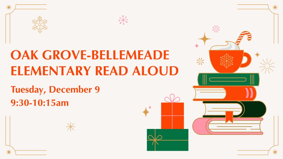 Help us bring in the start of the holiday season by reading a cozy, wintery book to the students at Oak Grove-Bellemeade Elementary!