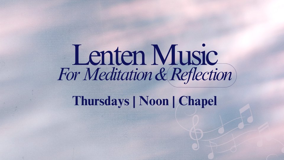 Join us every Thursday throughout the Lenten season at noon in the Chapel for a series of reflective musical offerings. There is no admission charge, however a free will offering will be received.