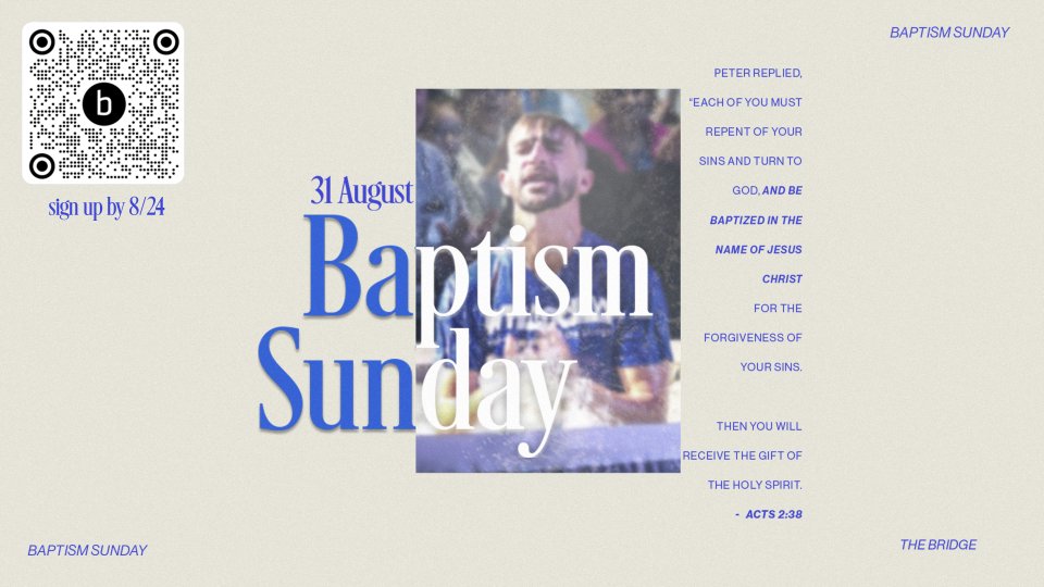 One of our favorite things to celebrate is baptism! It's an amazing way to say publicly that "I'm Made New!" If you're interested in being baptized at the Bridge, please register below. Registration will end on August 24.