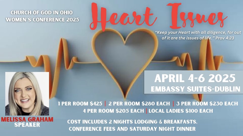 The Ohio Church of God is hosting a women’s conference April 4-6 at Embassy Suites-Dublin, OH.