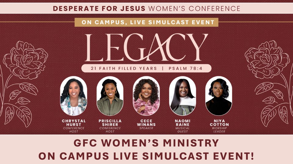 The Theme for this year is Legacy, anchored in Psalm 78:4 "We will not hide them from their children; we will tell the next generation the praiseworthy deeds of the Lord". Hear impactful teaching from CeCe Winans, Chrystal Evans Hurst, and Priscilla Shirer, and worship led by Naomi Raine and Niya Cotton.