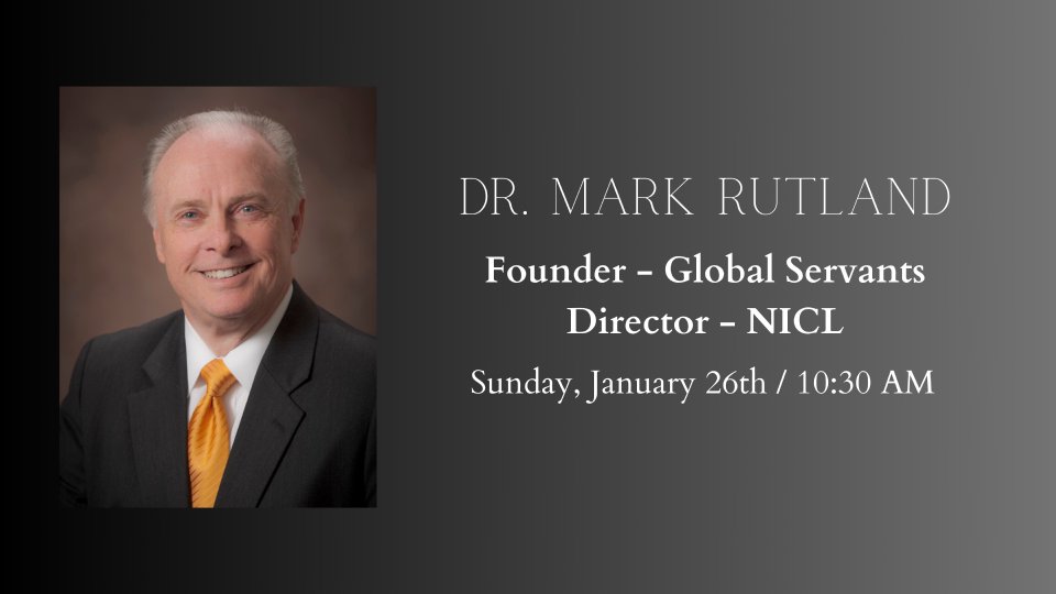 Join us Sunday, January 26th at 10:30 AM as we welcome our final guest speaker of the month: Dr. Mark Rutland. Dr. Rutland has held many impactful positions in the world-wide faith community. He is the founder of Global Servants and the Director of the National Institute of Christian Leadership. He has also served as president at multiple universities, pastored multiple mega-churches, and is a New York Times Best-Selling Author. It is an honor to have Dr. Rutland join us, and we hope you will too!