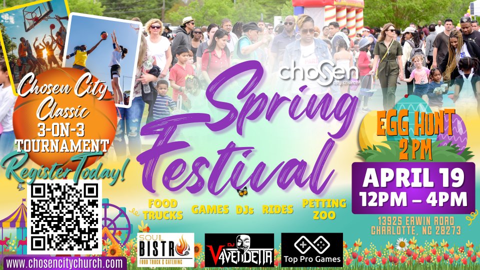 Lace up your sneakers and bring your best game to the Chosen City Classic 3-on-3 Tournament—a fast-paced, double elimination basketball tournament happening during our Spring Festival! There will be two divisions: Youth and Adult, with a maximum of 4 players per team.