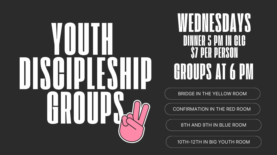 Wednesday Night from 6-7 PM in the Youth Wing
