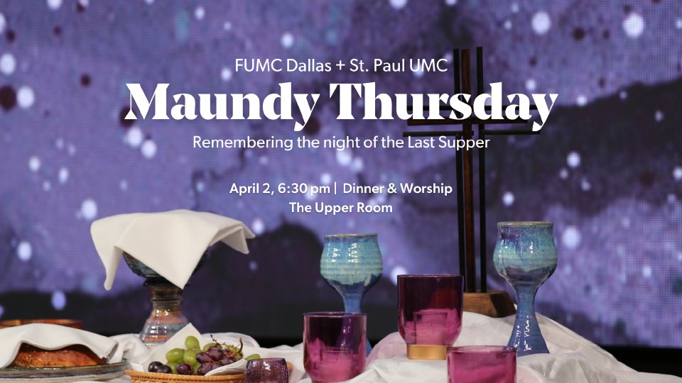 Join us for a meaningful night of worship with our partner church, St. Paul UMC! We will have dinner together and worship in the Upper Room, reflecting on Christ's Last Supper with His disciples. We will enjoy a simple soup dinner together. Please register so we know to prepare a place for you!