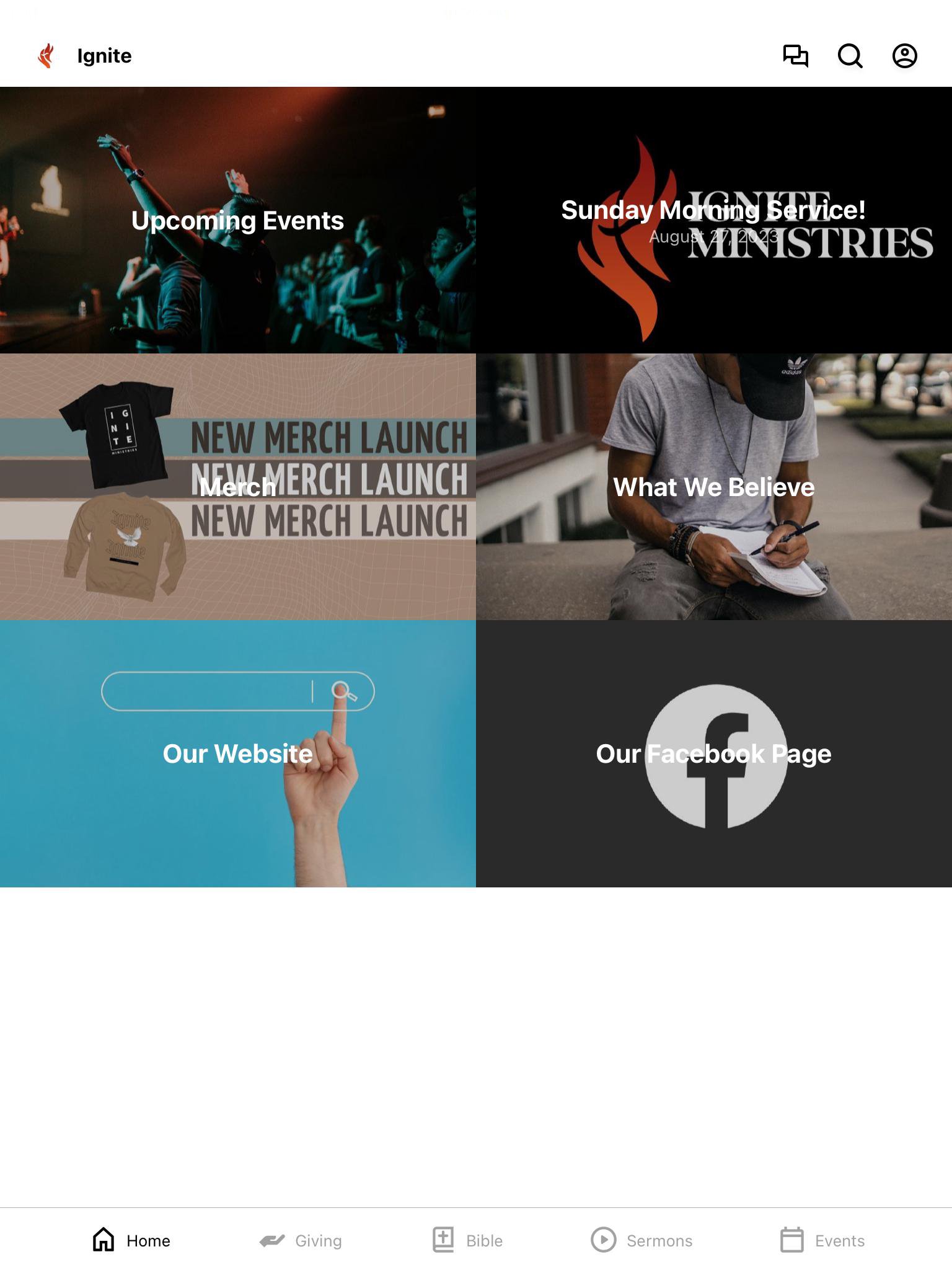 This app will help you stay connected with the day-to-day life of Ignite Ministries. With this app you can: watch or listen to past messages; stay up to date with push notifications; share your favorite messages via Twitter, Facebook, or email; and download messages for offline listening. You can communicate with other church members, stay up to date with events, and get engaged with our ministry.