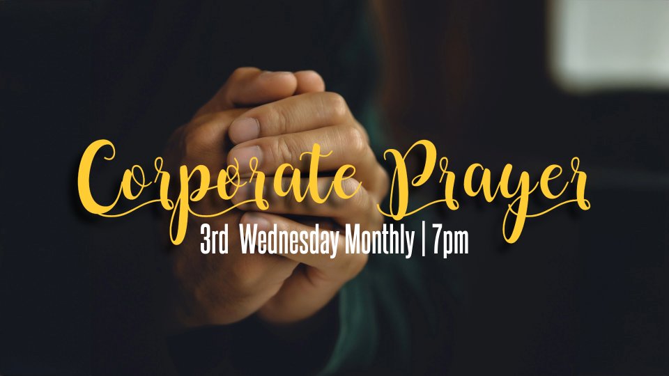 Join us every 3 Wednesday monthly in the Sanctuary for a time of corporate prayer. The whole church body is invited to gather together to pray for individuals, themselves, our church and our communities. There is children's church on the third floor and youth group in the Agape Hall.