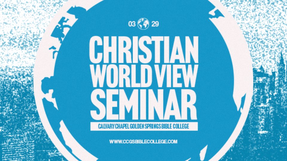 Have you ever asked, "What do I think about God in relation to my everyday choices?" The Calvary Chapel Golden Springs Bible College is pleased to announce our "Christian Worldview Seminar," taking place Saturday, March 29, from 8:30AM - 3:30PM. We invite you and everyone you know to attend this special life changing seminar. To register for this free event, or get more information, click on the link below.